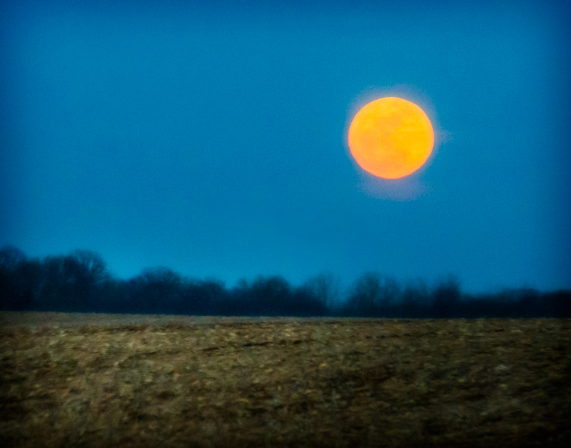 Tonight, as I was leaving for an appointment, I was headed east, for a short period of time. And I said to myself… “Holy Smackerels Polly. That is one dang BIG orange ball in the sky!” And it was.